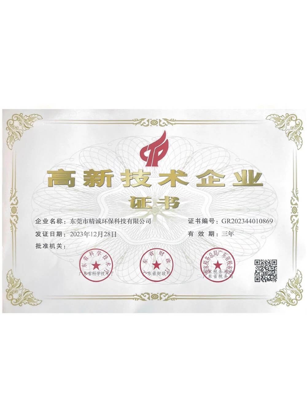 • 高新技術企業證書